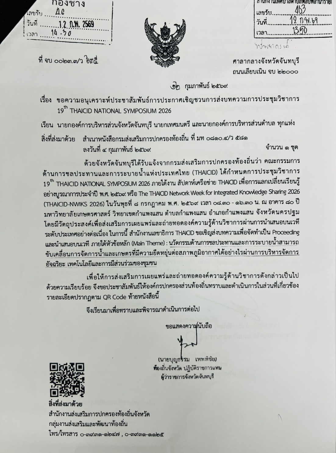 ขอความอนุเคราะห์ประชาสัมพันธ์ ส่งบทความเพื่อจัดทำ Proceeding และนำเสนอบนเวที