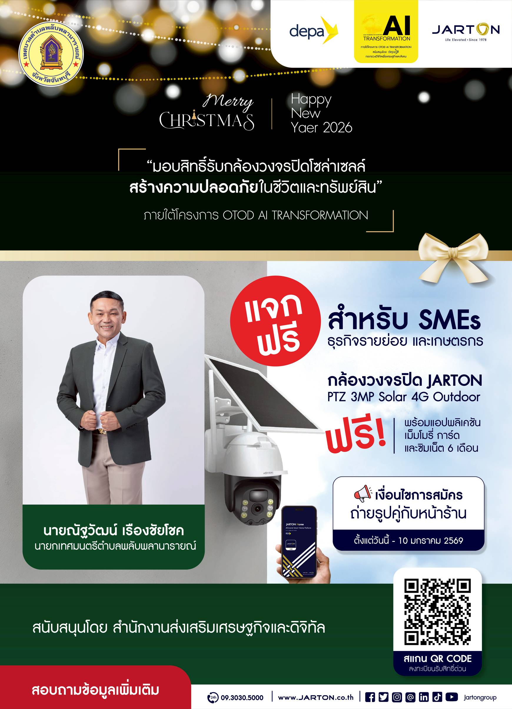 🌲🌲Merry Christmas🌲🌲 – เทศบาลตำบลพลับพลานารายณ์ และ depa มอบสิทธิ์กล้องวงจรปิดโซล่าเซลล์ พร้อมซิมอินเตอร์เน็ตนาน 6 เดือน ฟรีไม่มีค่าใช้จ่าย ให้กับร้านค้า แผงลอย ผู้ประกอบการ SMEs ภายใต้โครงการ "AI Transformation "