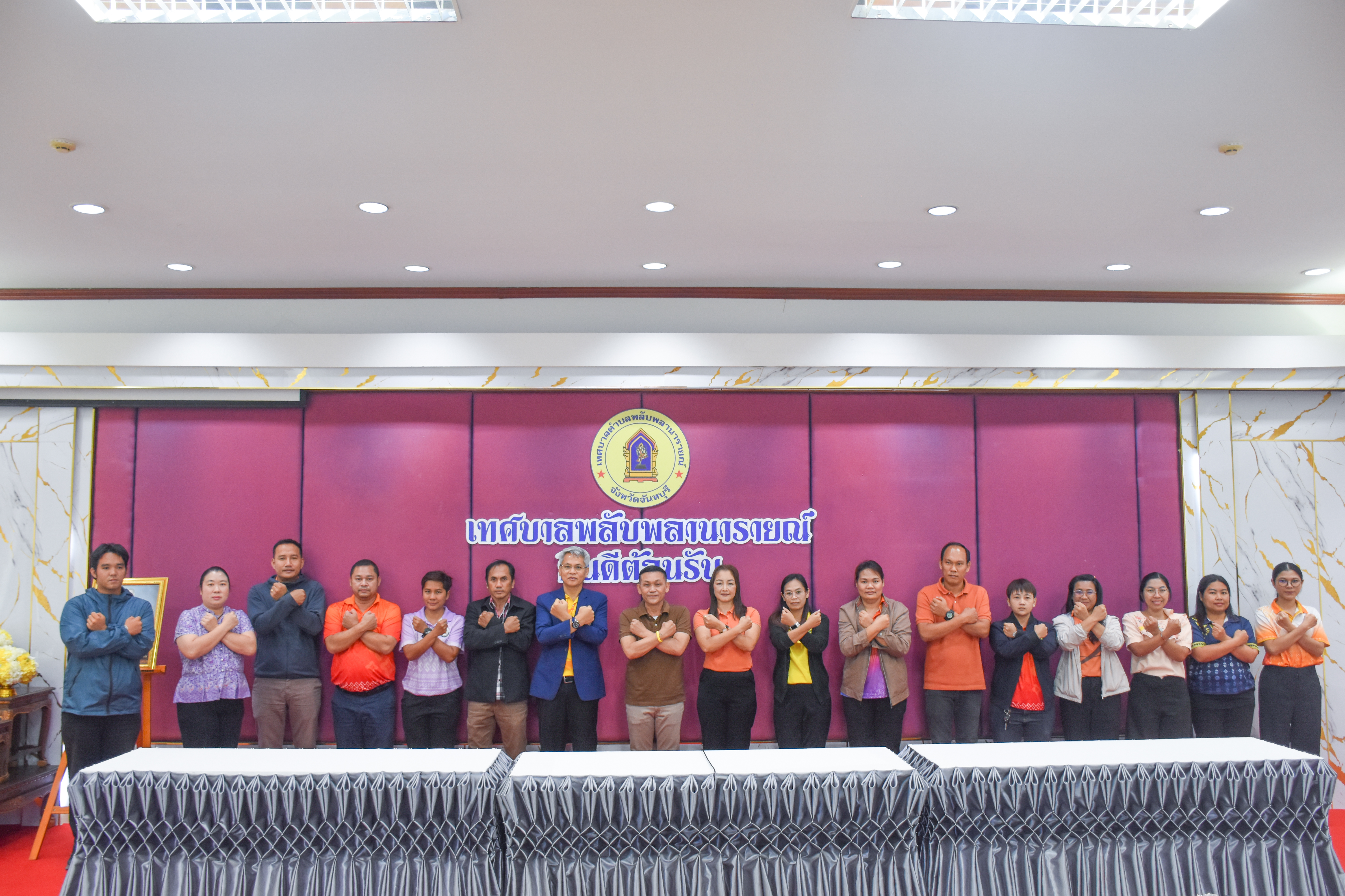 ในการนี้ ถ่ายทอดและมอบนโยบายการสร้างวัฒนธรรมองค์กรแห่งความสุจริต ปฏิเสธการรับของขวัญและของกำนัลทุกชนิดจากการปฏิบัติหน้าที่ (No Gift Policy) ซึ่งดำเนินการเพื่อปลูกจิตสำนึก และสร้างวัฒนธรรมองค์กรแห่งความสุจริต โดยให้เจ้าหน้าที่ปฏิเสธการรับของขวัญและของกำนัลทุกชนิดจากการปฏิบัติหน้าที่ เพื่อถ่ายทอด นโยบายการสร้างวัฒนธรรมองค์กรแห่งความสุจริต (์No Gift Polily) เพื่อให้เทศบาลตำบลพลับพลานารายณ์ เป็นหน่วยงานที่เจ้าหน้าที่ของรัฐทุกคน จะไม่รับของขวัญและของกำนัล ทุกชนิด ในขณะ/ก่อน/หลังปฏิบัติหน้าที่ ที่จะส่งผลให้เกิดการทุจริตและประพฤติมิชอบ และขอแสดงเจตนารมณ์ว่า จะทำหน้าที่นำบุคลากรของเทศบาลตำบลพลับพลานารายณ์ ให้ยึดมั่นในสถาบันหลักของประเทศ อันได้แก่ชาติ ศาสนา พระมหากษัตริย์ และการปกครองระบอบประชาธิปไตยอันมีพระมหากษัตริย์ทรงเป็นประมุข จะเป็นคนดี มีคุณธรรม ประพฤติปฏิบัติตนในสัมมาอาชีพด้วยความซื่อสัตย์สุจริตเป็นหลักสำคัญมั่นคง ดำรงตนอยู่ด้วยความมีเกียรติและศักดิ์ศรีความเป็นมนุษย์ กล้ายืนหยัดในสิ่งที่ถูกต้อง ปฏิบัติหน้าที่ด้วยความซื่อสัตย์ สุจริต โปร่งใส ยึดมั่นคุณธรรม จริยธรรม