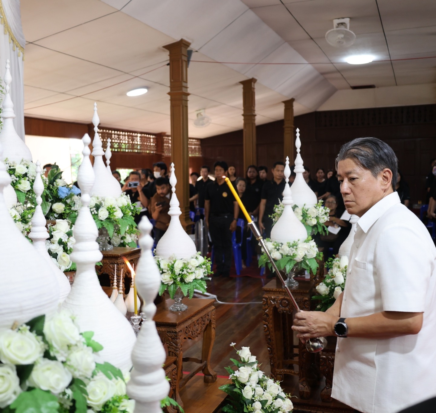 พิธีสวดพระพุทธมนต์ และเจริญจิตตภาวนา อุทิศถวาย แด่ สมเด็จพระนางเจ้าสิริกิติ์ พระบรมราชินีนาถ พระบรมราชชนนีพันปีหลวง 27 เม.ย. 2569 14 ครั้ง พิธีสวดพระพุทธมนต์ และเจริญจิตตภาวนา อุทิศถวาย แด่ สมเด็จพระนางเจ้าสิริกิติ์ พระบรมราชินีนาถ พระบรมราชชนนีพันปีหลวง . วันที่ 24 เมษายน 2569 เวลา 14.30 น. ณ วัดทองทั่ว ต.คลองนารายณ์ อ.เมืองจันทบุรี จ.จันทบุรี พระครูจารุเขมากร วิ ดร. เจ้าอาวาสวัดทองทั่ว เจ้าคณะตำบลคลองนารายณ์ อ.เมือง จ.จันทบุรี เป็นประธานฝ่ายสงฆ์ มีนายมนต์สิทธิ์ ไพศาลธนวัฒน์ ผู้ว่าราชการจังหวัดจันทบุรี เป็นประธานฝ่ายฆราวาส ในพิธีสวดพระพุทธมนต์ และเจริญจิตตภาวนา อุทิศถวาย แด่ สมเด็จพระนางเจ้าสิริกิติ์ พระบรมราชินีนาถ พระบรมราชชนนีพันปีหลวง ในการนี้ นายณัฐวัฒน์ เรืองชัยโชค นายกเทศมนตรีตำบลพลับพลานารายณ์ มอบหมายให้นายสราวุธ อินทะพันธุ์ ปลัดเทศบาล เข้าร่วมพิธีฯ . ติดต่อ เทศบาลตำบลพลับพลานารายณ์ โทรศัพท์ : 0-3941-8498-9 , 0-3946-0939 (งานป้องกันฯ) Line : https://lin.ee/IwlJEpU Website : http://www.ppnr.go.th/