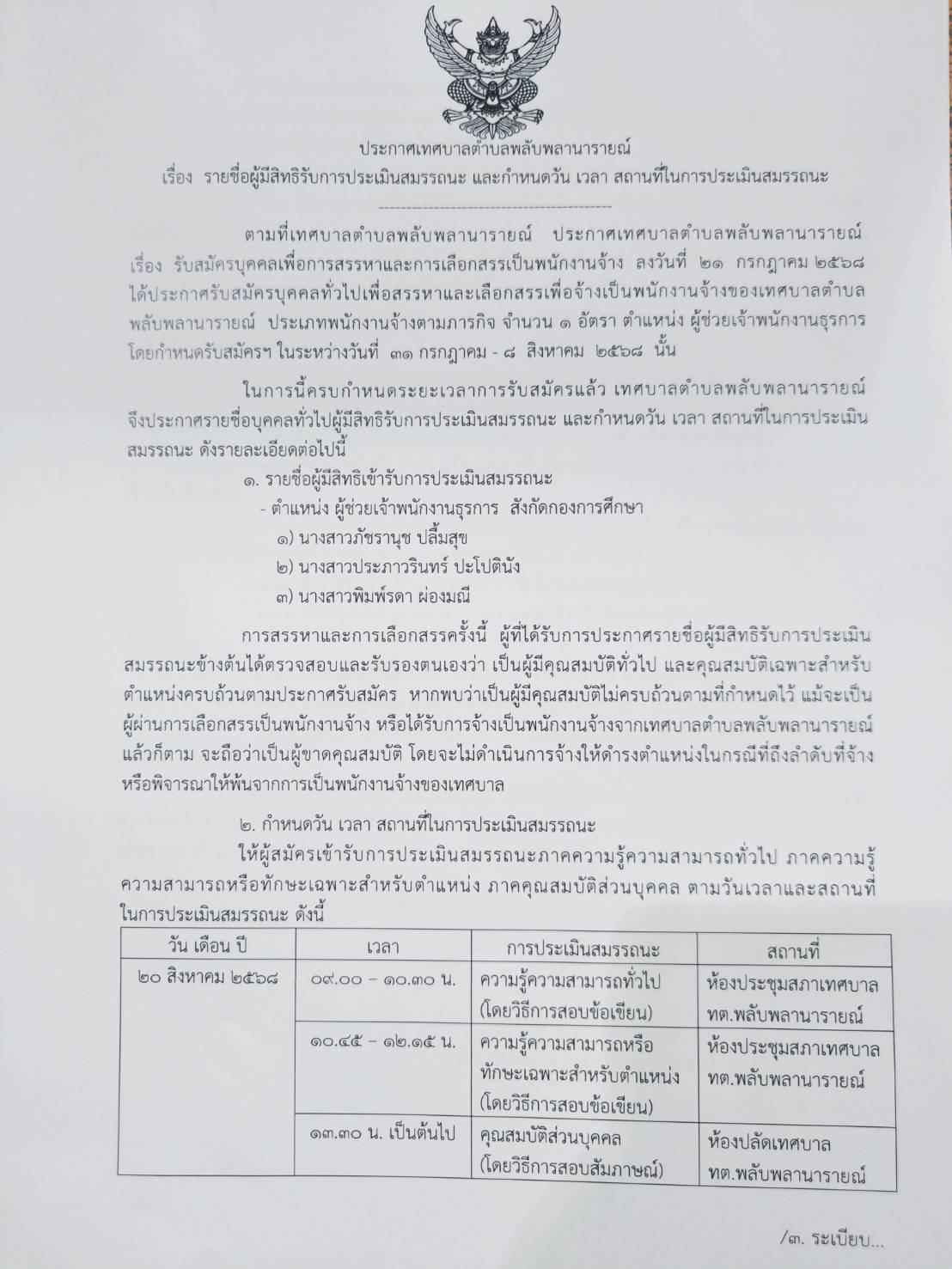 ประกาศเทศบาลตำบลพลับพลานารายณ์