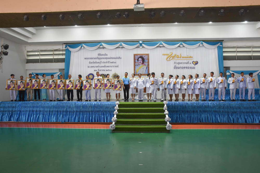 🏵 พิธีมอบเงินพระราชทานขวัญถุงกองทุนแม่ของแผ่นดิน จังหวัดจันทบุรี ประจำปี 2568 22 ส.ค. 2568 623 ครั้ง พิธีมอบเงินพระราชทานขวัญถุงกองทุนแม่ของแผ่นดิน จังหวัดจันทบุรี ประจำปี 2568 . วันที่ 22 สิงหาคม 2568 ณ อาคารอเนกประสงค์เทศบาลตำบลพลับพลานารายณ์ นายณัฐวัฒน์ เรืองชัยโชค นายกเทศมนตรีตำบลพลับพลานารายณ์ มอบหมายให้ นายจักรวาล นิยมวานิช รองนายกเทศมนตรีตำบลพลับพลานารายณ์ เข้าร่วมพิธีมอบเงินพระราชทานขวัญถุงกองทุนแม่ของแผ่นดิน จังหวัดจันทบุรี ประจำปี 2568 มีนายมนต์สิทธิ์ ไพศาลธนวัฒน์ ผู้ว่าราชการจังหวัดจันทบุรี เป็นประธานในพิธี มีหัวหน้าส่วนราชการระดับจังหวัด ผู้อำนวยการสำนักงาน ป.ป.ส.ภาค 2 นายอำเภอ พัฒนาการอำเภอ คณะกรรมการเครือข่ายกองทุนแม่ของแผ่นดินระดับจังหวัด เจ้าหน้าที่พัฒนาชุมชน และตัวแทนหมู่บ้านกองทุนแม่ของแผ่นดิน ประจำปี 2568 จำนวน 13 หมู่บ้าน เข้าร่วมกิจกรรมอย่างพร้อมเพรียง . กิจกรรมนี้มีวัตถุประสงค์เพื่อนำเงินพระราชทานขวัญถุงไปใช้ในการขับเคลื่อนกิจกรรมแก้ไขปัญหายาเสพติดและพัฒนาคุณภาพชีวิตของประชาชนในชุมชน ซึ่งเป็นการสนองพระราชปณิธานของ สมเด็จพระนางเจ้าสิริกิติ์ พระบรมราชินีนาถ พระบรมราชชนนีพันปีหลวง ที่ทรงมีพระราชดำริให้มีการจัดตั้งกองทุนนี้ขึ้นมาเพื่อสร้างความเข้มแข็งให้แก่ชุมชนและหมู่บ้านต่างๆ ในการเฝ้าระวังและป้องกันภัยจากยาเสพติด โดยเน้นกระบวนการมีส่วนร่วมของคนในชุมชน